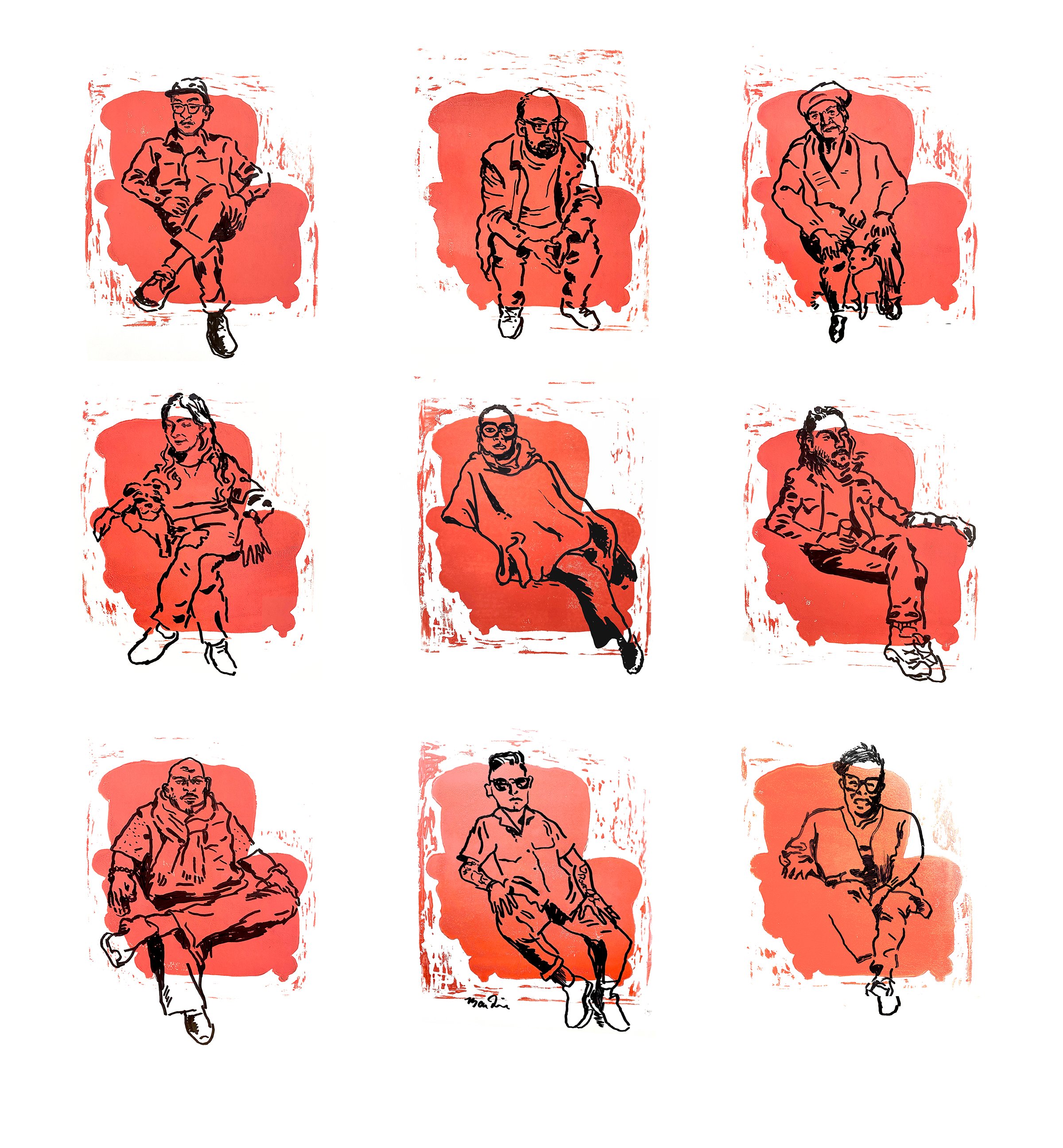 Since then, The Pink Armchair Portraits has grown into an ambitious, evolving series—an ever-expanding constellation of friends, acquaintances, artists, writers, and chance encounters. One chair, one sitter, one moment at a time, it gathers fragments of humanity into a single living work. Rooted in Jersey City, the project has recently evolved into a new iteration: live, expressive Sharpie portraits drawn in under seven minutes. As it begins to travel beyond the city, the Pink Armchair Project continues to expand its archive, deepening its portrait of everyday humanity.
